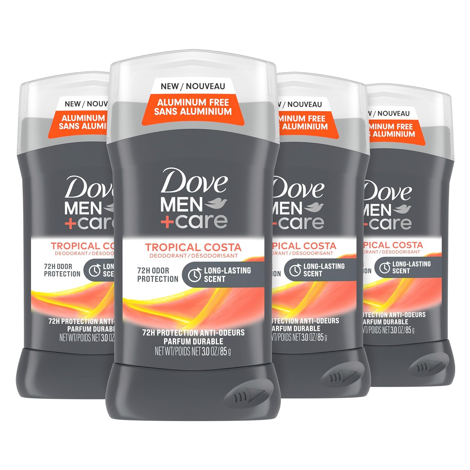 Dove Men+Care Aluminum-Free Deodorant Tropical Costa 4 Count for a Long-Lasting Scent, with 72H Odor Protection, 3.0 oz