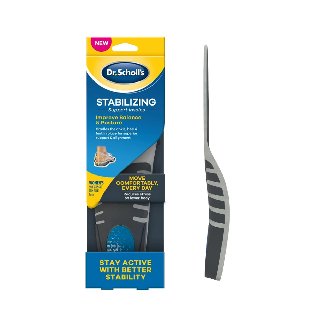 Dr. Scholl’s Stabilizing Support Insoles improve stability, balance & posture so you can move more easily throughout the day. Experience the comfort immediately with the shock absorbing heel cup that reduces stress on the lower body and motion control stabilizing shell that helps ensure better ankle alignment.