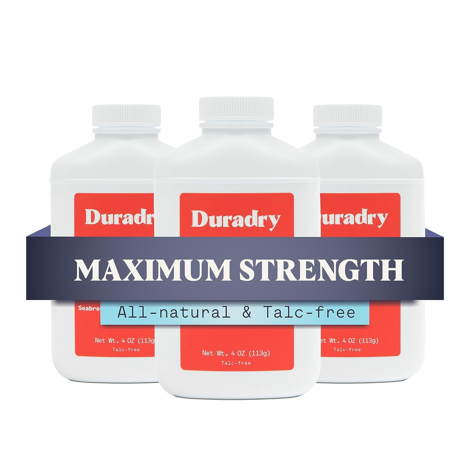 Duradry Body Powder - Sweat Defense & Odor Control, Sweat Absorbing, Anti-Chaffing, All Natural Powder, Talc-Free, Prevents and Eliminates Any Body Odor Naturally - Seabreeze, 4oz, 3-Pack