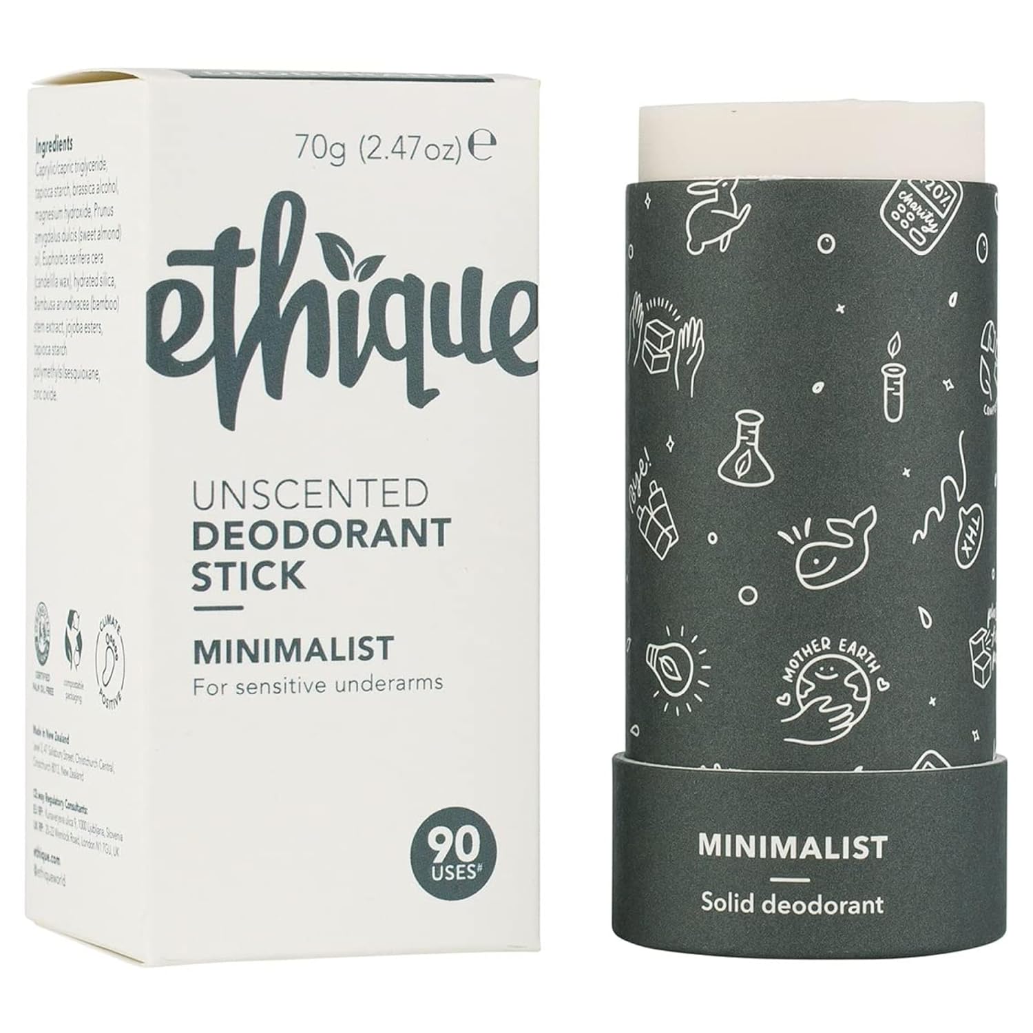 Ethique Minimalist Unscented Deodorant Stick for Men & Women - Natural Aluminum-Free, Plastic-Free, Vegan, Cruelty-Free, Eco-Friendly, 2.47 oz (Pack of 1)