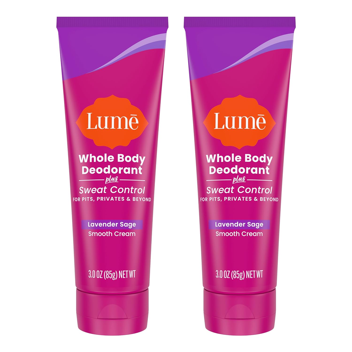 Lume Whole Body Deodorant Plus Sweat Control - Smooth Cream Tube - 72 Hour Odor And Sweat Control - Baking Soda Free, Skin Loving - 3.0 ounce (Lavender Sage)