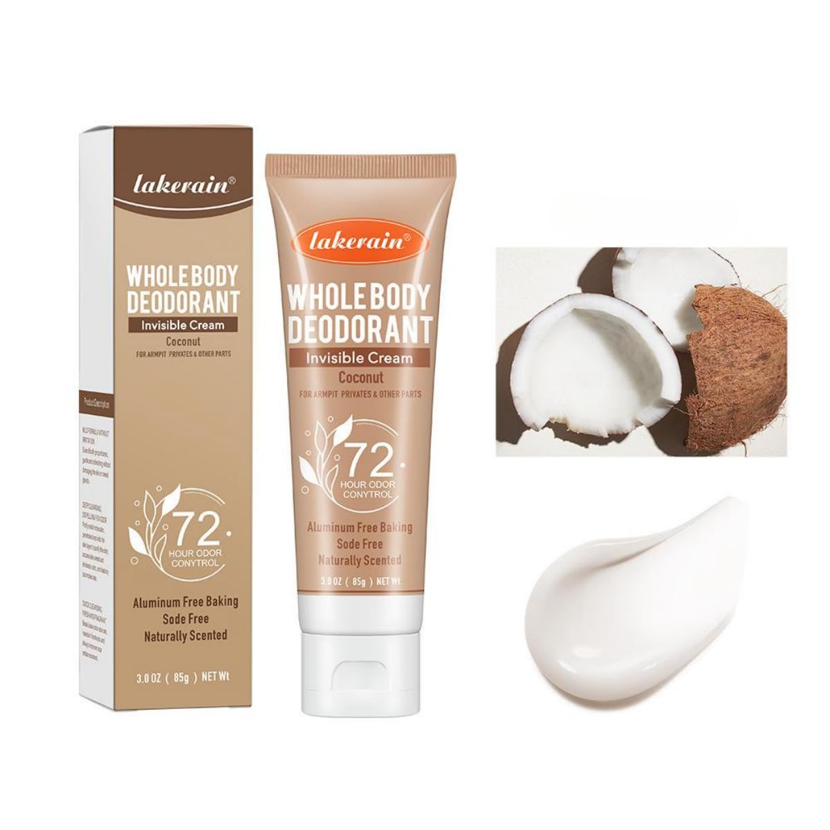 Mysense Whole Body Deodorant Invisible Cream Tube For Body Odor Removing Skin Safe and 72 Hour Odor Control 3 Ounce (02 Coconut)