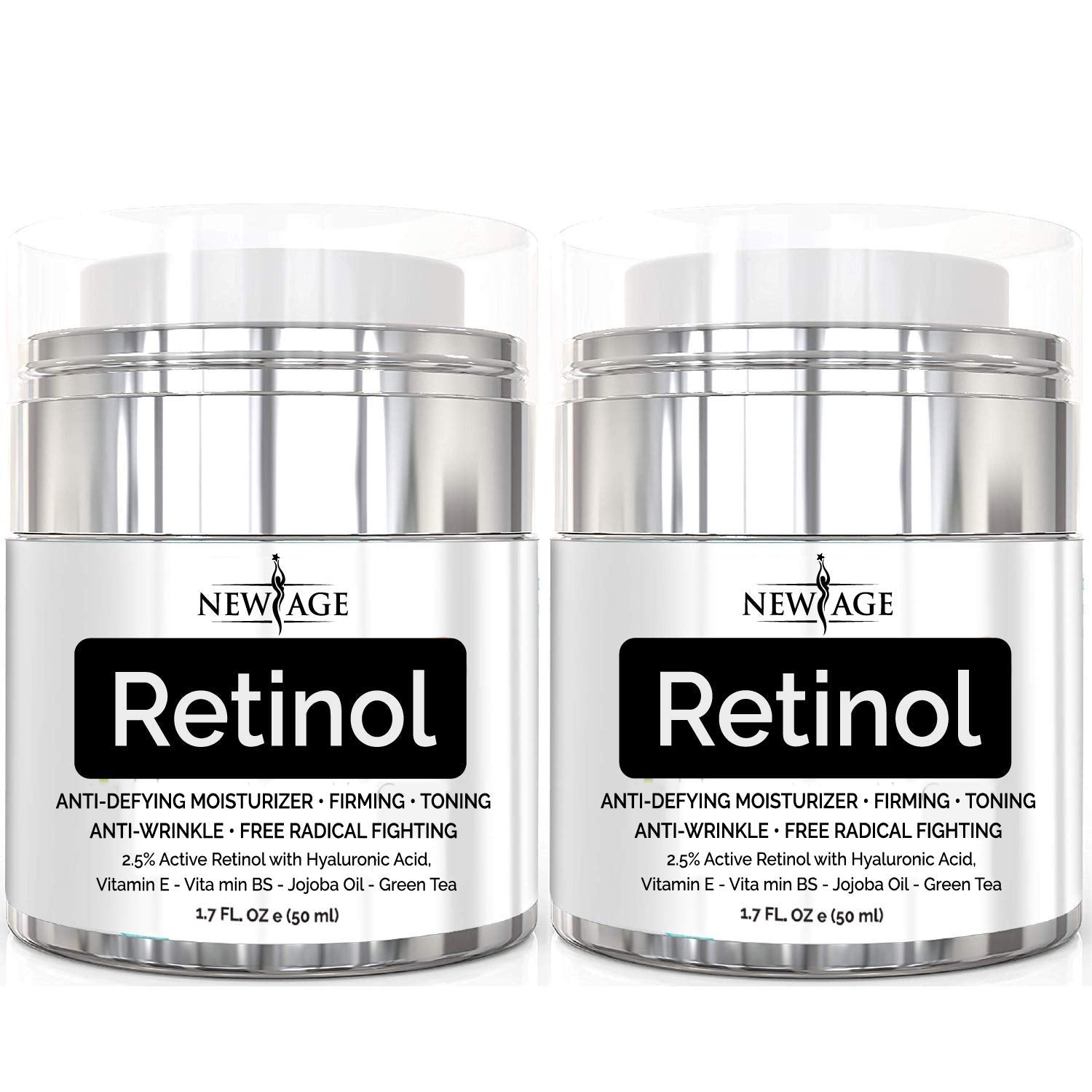 NEW AGE Retinol Cream Neck & Facial Moisturizer Serum with Hyaluronic Acid, Vitamin E - Anti Aging Formula Reduces Wrinkles, Fine Lines-Day and Night Cream 1.7 Fl Oz - 2 Pack - Retinol