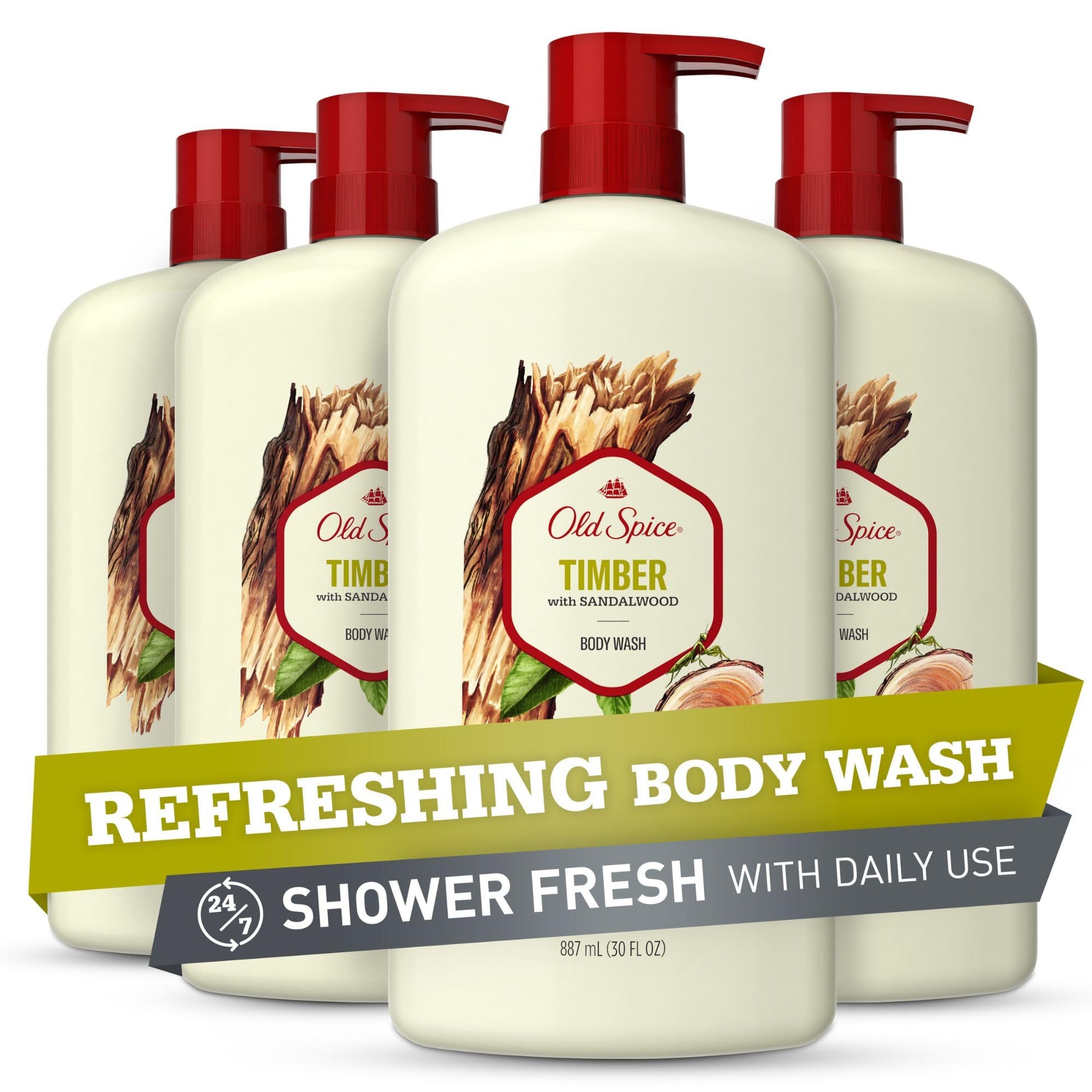Old Spice Body Wash for Men, Timber with Sandalwood Scent, 25 Fl Oz (Pack of 4)