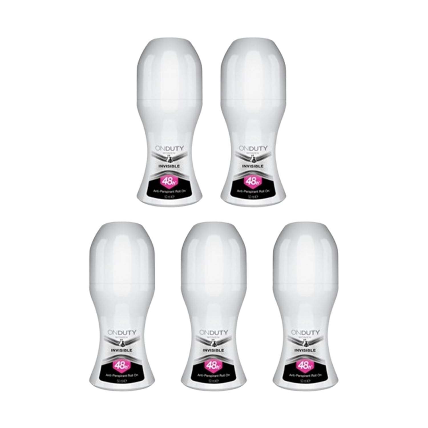 On Duty Invisible Women's Antiperspirant Roll On Deodorant 50 ml, Formula that does not cause yellow stains on clothes, Protective barrier against sweat with Dry pore technology (Pack Of 5)