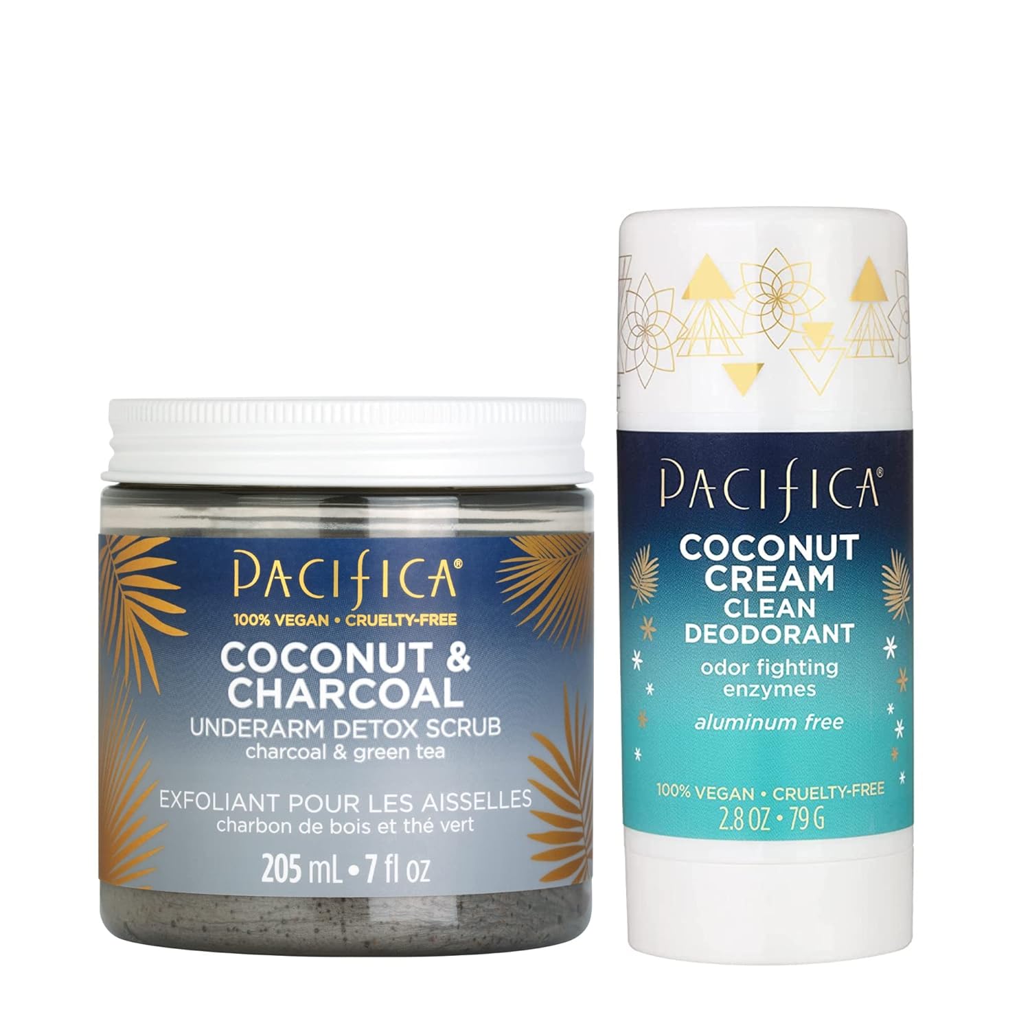 Pacifica Beauty Coconut and Charcoal Underarm Detox Scrub for Natural Deodorant Users, Non Aluminum, Safe for Sensitive Skin, 100% Vegan & Cruelty Free + Clean Beauty, Fresh, 2 Count