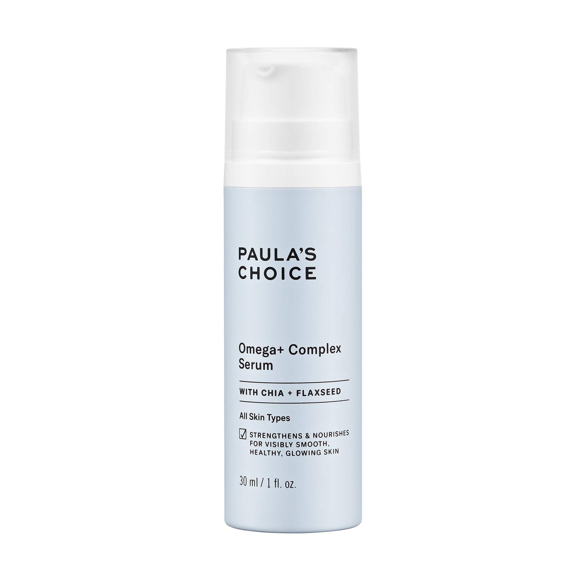 - Paula's Choice Omega+ Complex Serum with Chia, Flax Seed, Passion Fruit, and Olive Oil contains robust levels of skin-restoring omega fatty acids, skin-identical ceramides, and hydrating botanicals to visibly improve skin's health and overall glow.
